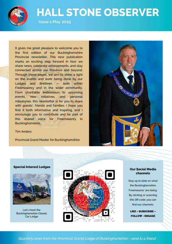 Misbourne Lodge is proud to be a Hall Stone Lodge and furthermore, Buckinghamshire has the distinction of being the only Hall Stone Province in England. See separate heading for further details.